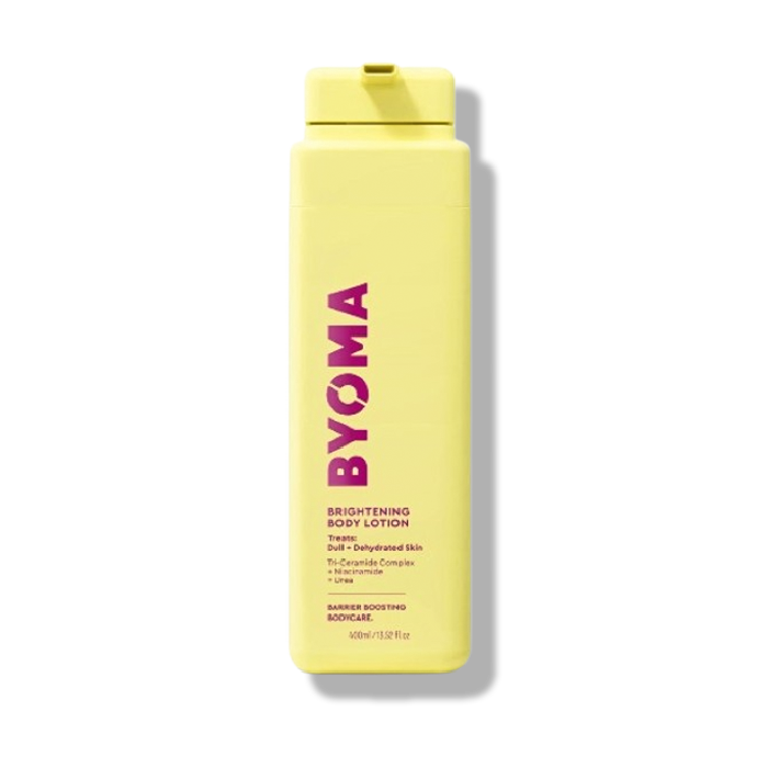 Byoma Brightening Body lotion (400 ml) is a pH-balanced, creamy body lotion with prebiotics, niacinamide, and azelaic acid. It brightens, evens tone, and supports the skin barrier, while leaving skin soft and glowing from first use.