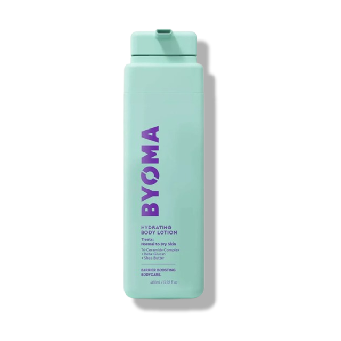 Byoma Hydrating Body Lotion is a rich, buttery-soft moisturizer powered by a Tri‑Ceramide Complex, shea butter, beta‑glucan, and bakuchiol. Clinically shown to deeply hydrate, strengthen the skin barrier, and leave skin smooth and supple from the first use, while being alcohol‑free, vegan, cruelty‑free, and dermatologist‑tested.