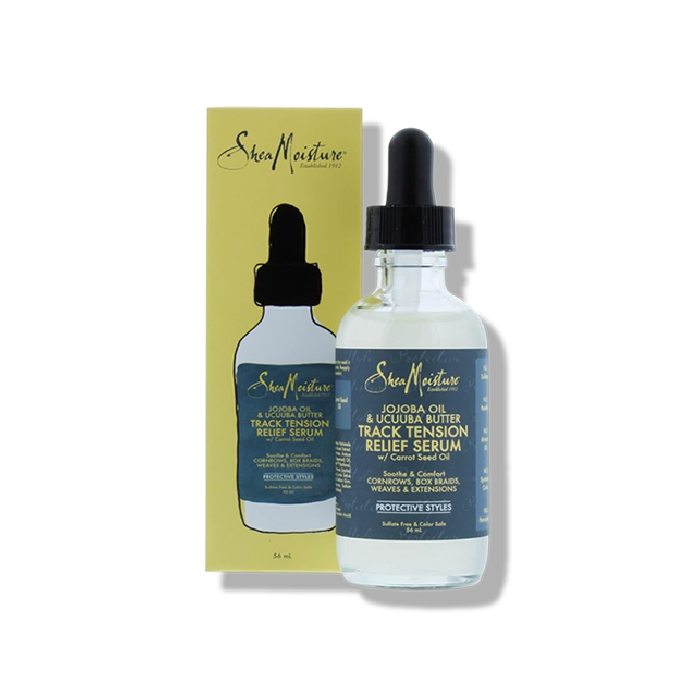 Jojoba Oil & Ucuuba Butter Itch Relief Serum (56 ml) is a fast-absorbing scalp serum designed for braided styles. Packed with jojoba oil, ucuuba butter, shea butter, and peppermint, it instantly soothes scalp tightness, tension, and itching while moisturizing without grease.
