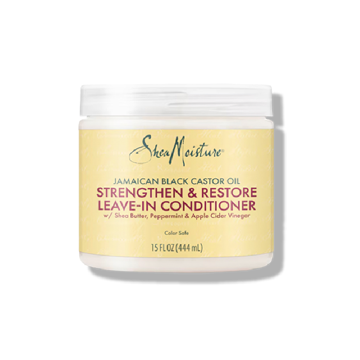SheaMoisture Jamaican Black Castor Oil Strengthen & Restore Leave‑In Conditioner (≈340 ml) is a reparative, detangling cream enriched with Jamaican black castor oil, fair-trade shea butter, peppermint, and keratin. It softens, controls frizz, and boosts elasticity—ideal for textured, heat‑styled, or damaged hair.