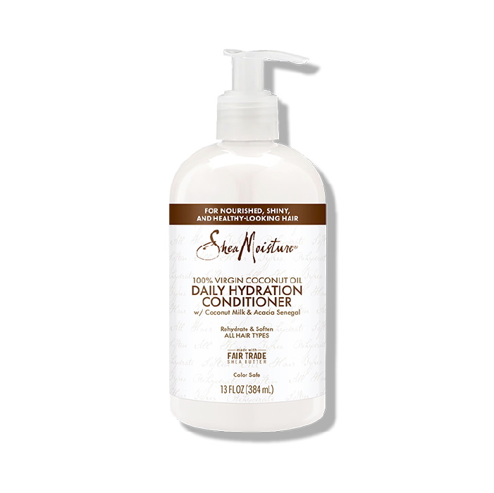 SheaMoisture 100 % Virgin Coconut Oil Daily Hydration Conditioner: A creamy, sulfate‑free rinse‑out conditioner infused with 100 % virgin coconut oil, coconut milk, shea butter, acacia, argan, aloe, and rosehip. It softens, hydrates, detangles, and reduces frizz, enveloping your hair in a delicate coconut scent—great for all hair types, especially textured or dry hair