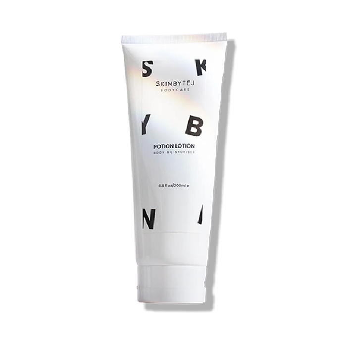 SkinByTej Portion Lotion is a lightweight glycolic acid body moisturizer that gently exfoliates and hydrates. With tiny glycolic molecules, niacinamide, lactic acid, vitamins C & E, and shea butter, it smooths texture, brightens tone, and supports the skin barrier .